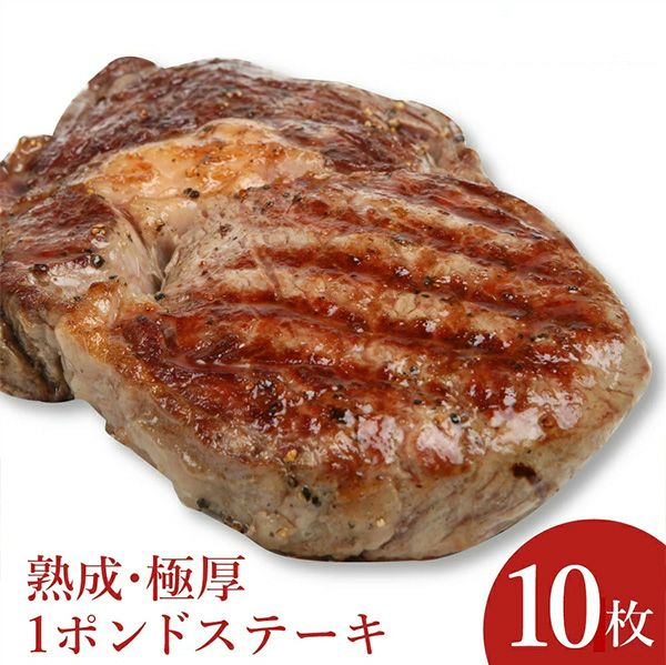 人気のリブアイロール 1ポンドステーキ 10セット+1枚 ステーキ皿からはみ出すほどの迫力の大きさ! 赤身のステーキ肉といえばやっぱり1ポンドステーキです。 国産の霜降りが苦手な方や、赤身肉好きの方に特におすすめ。 当店では丁寧に熟成を施し、熟成肉ならではの旨味をお届けいたします。 10セットに加えて1枚おまけ付きで、さらにお得に楽しめます。ご家庭やパーティーでたっぷり本格ステーキを満喫できます。