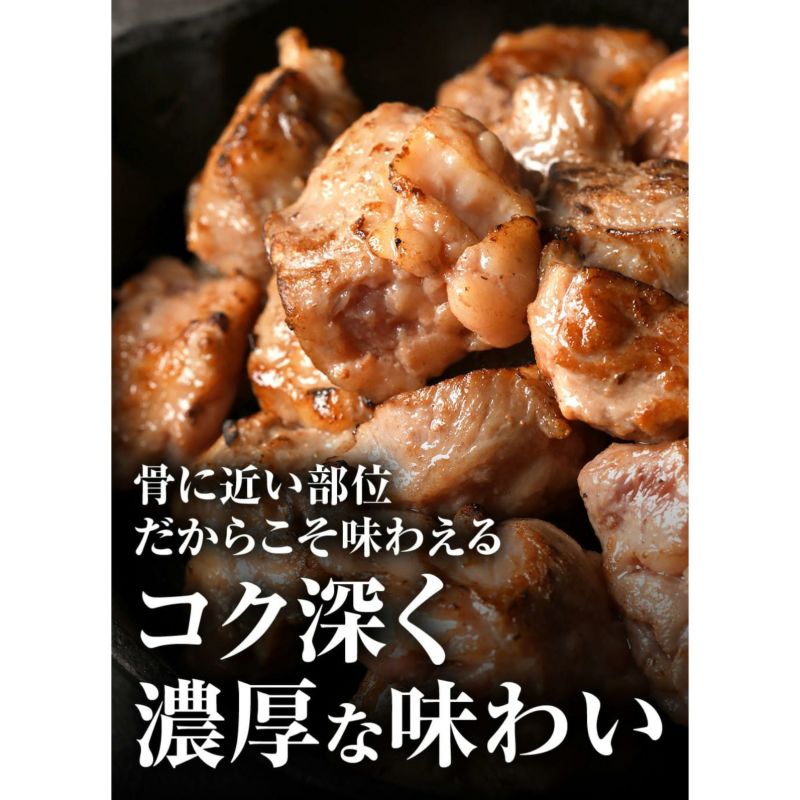 旨みが濃い骨に近い部位 コク深く濃厚な味わいをお楽しみください。 ・たっぷりボリューム:1袋500g。家族やお友だちとシェアするにも十分な量です。 ・大きめカット:食べ応えもありながら食べやすさも追及した少し大ぶりなサイズ。 ・ シンプルな下味:肉の旨味を引き立てる下味がついています。塩でもタレでもお楽しみいただけます。