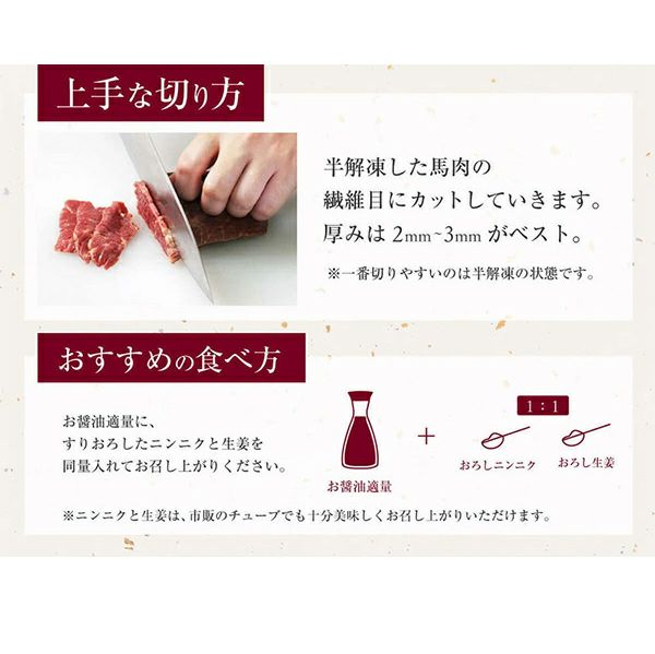 他の画像を見る なめらかな舌触りにうっとり 芳醇な滋味があふれこぼれる カナダ産 馬刺し赤身【200g】 ギフト 当店通常価格 ¥ 2,800 税込 〜 当店通常価格 ¥ 税込 在庫切れ 詳細を見る お気に入りに登録する
