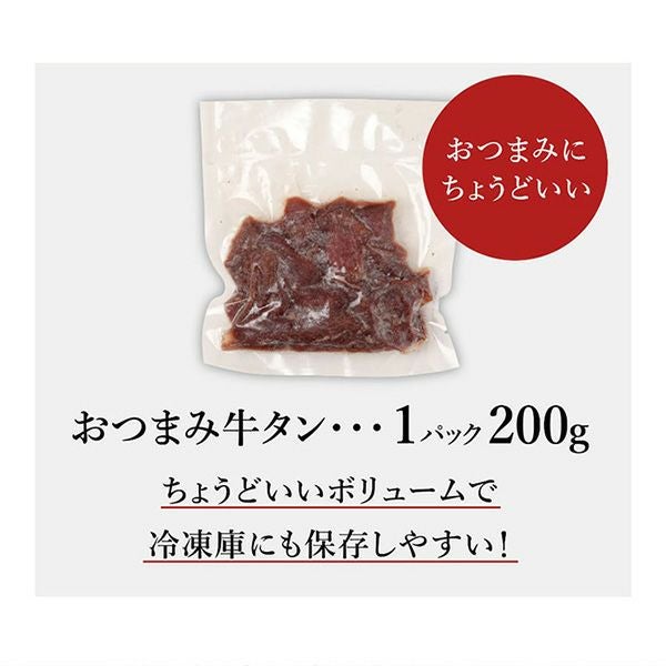 おつまみ牛タン 肉の旨味をギュッと閉じ込めた、食べやすいサイズの牛タンおつまみです。 噛むほどにあふれる旨味と程よい塩気が、ビールやハイボールとの相性抜群! そのままでも美味しく、軽く温めても香ばしさが引き立ちます。 おうち飲みやBBQ、キャンプのお供にもぴったりの人気商品です。