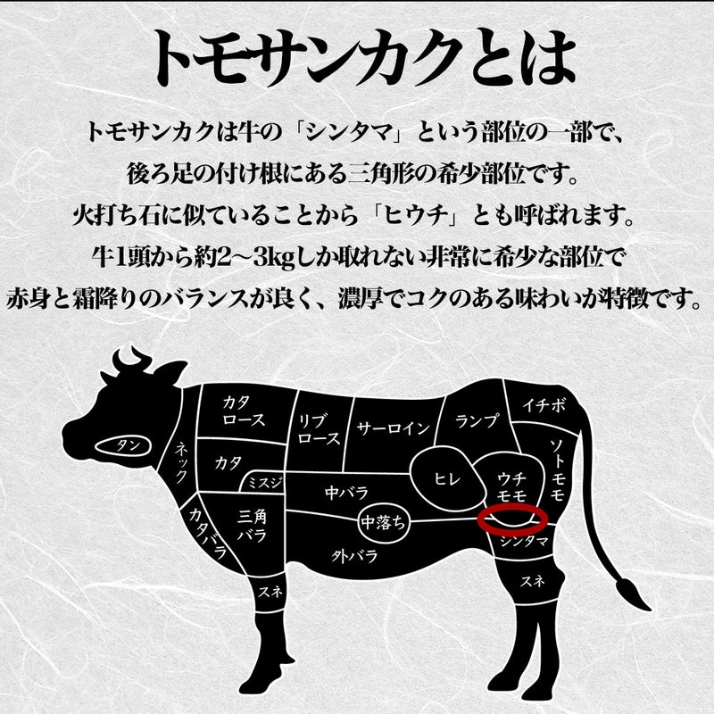 名称 牛トモサンカク 原材料名 牛肉(ニュージーランド産) 内容量 500g 賞味期限 製造日より1年 保存方法 冷凍 召し上がり方・取扱い上の注意 -18℃以下で保存してください。 解凍後、中心部まで十分に加熱してお召し上がりください。 発送方法 冷凍ヤマトクール便 製造者 有限会社大元商店 広島県尾道市山波町3059-1 販売者 株式会社フーズアイ 広島県広島市西区草津港1-6-10