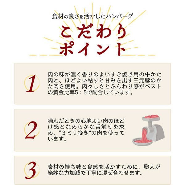 他の画像を見る 洋食屋さんのハンバーグがおウチでお楽しみいただけます。 メシ友ハンバーグ 【150g×3個】 NEW カナダビーフ ギフト 当店通常価格 ¥ 1,100 税込 〜 当店通常価格 ¥ 税込 詳細を見る お気に入りに登録する